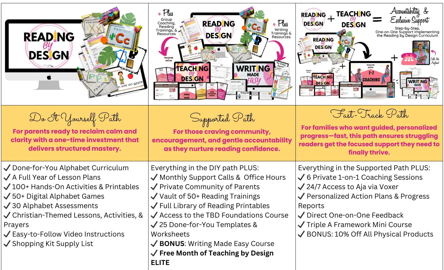 That’s why I’ve created three unique ways for you to step into Reading by Design Phase One—so you can choose the exact level of support that fits your family, your budget, and this season of life.